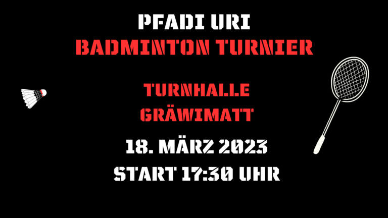 Das Badmintonturnier der Pfadi Uri findet wieder statt. Am 18. März können die Besten Teams der Pfadi in der Turnhalle Gräwimatt in Schattdorf Ihr können beweisen.